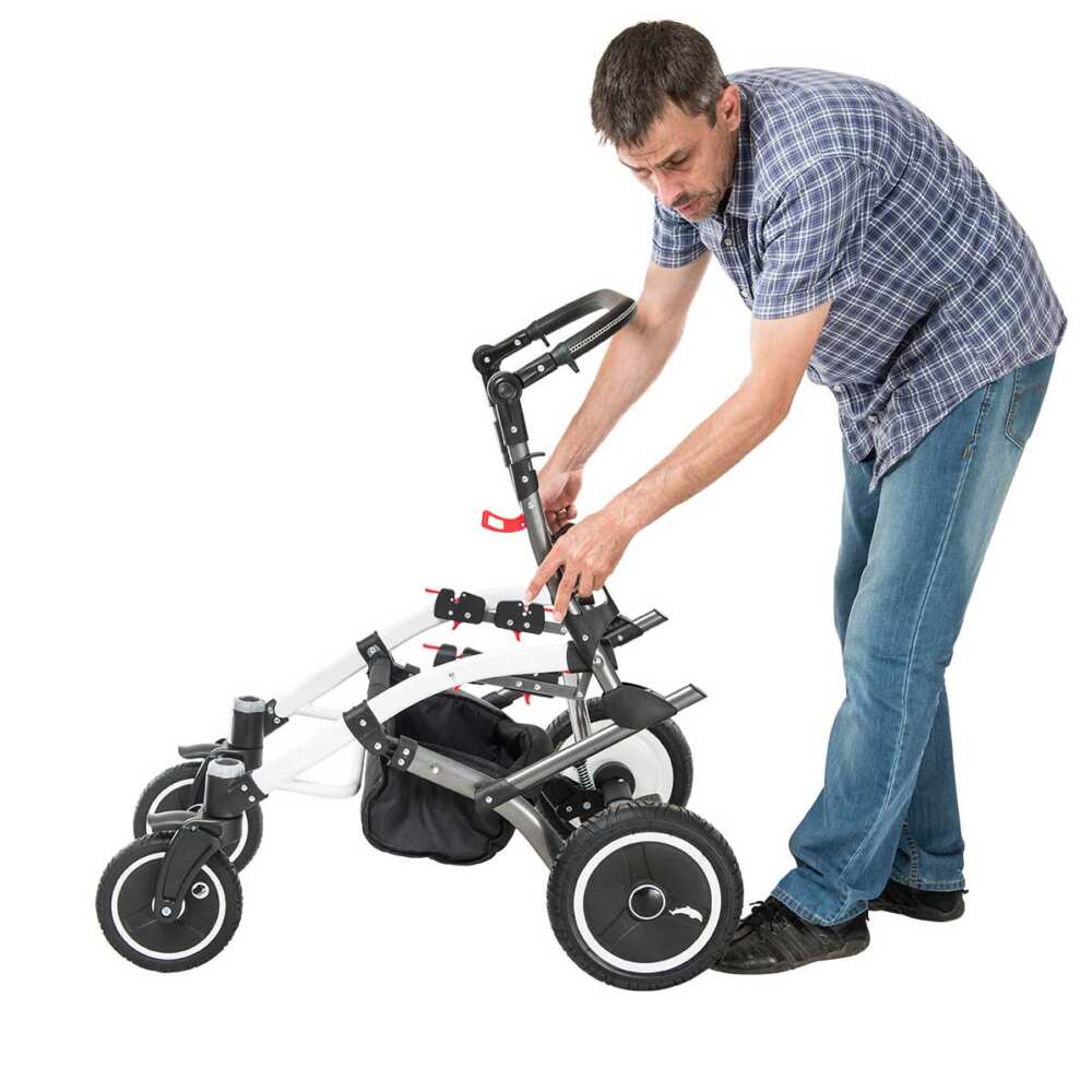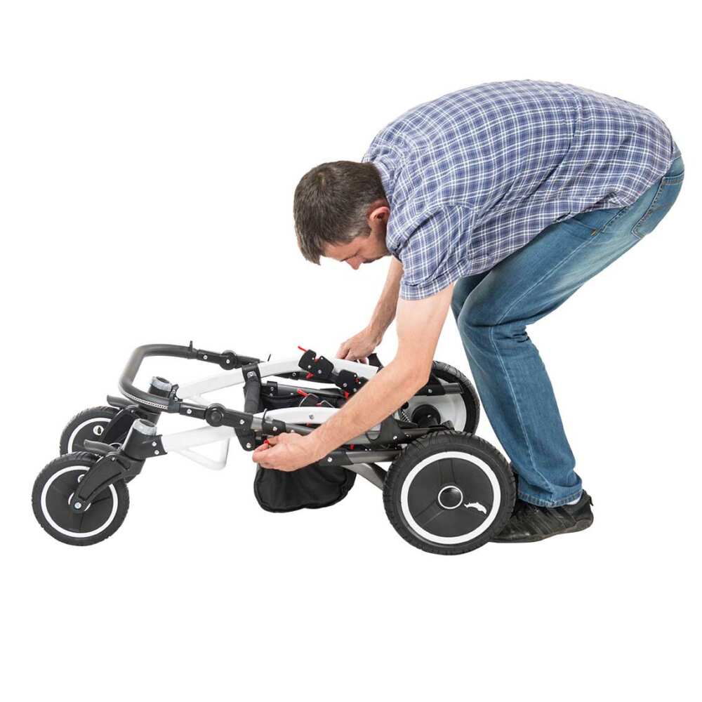 Έχει ρυθμιζόμενο βάθος καθίσματος και κλίση πλάτης. Χωράει άνετα στον χώρο αποσκευών ενός αυτοκινήτου καθώς είναι ιδιαίτερα μικρό.
