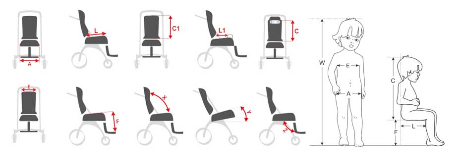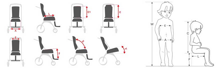 | A/E | Πλάτος καθίσματος & πλάτης | [cm] | 29 | 34 | 39 | 43 |