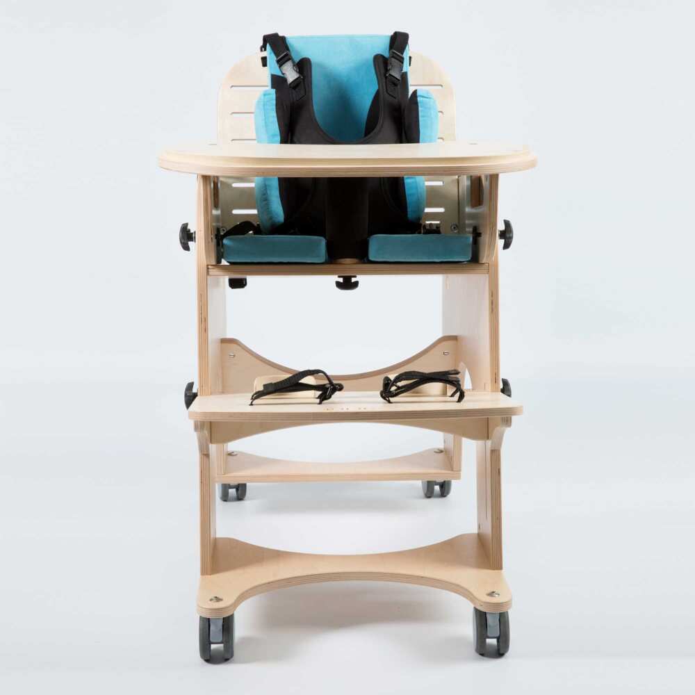 Λειτουργικό και απόλυτα ασφαλές προσφέρει ορθοστάτηση χωρίς να χρειάζεται το παιδί να κατέβει από την καρέκλα καθώς είναι εξοπλισμένο με υδραυλική μπουκάλα. Επιπλέον το γιλέκο θώρακος και η ζώνη λεκάνης είναι εξοπλισμένα με το πρωτοποριακό σύστημα “hold & pull”© το οποίο μας επιτρέπει την γρήγορη και με ακρίβεια σταθεροποίηση του παιδιού