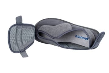 Είναι κατασκευασμένο από μικροΐνες ώστε να αγκαλιάζει το πόδι, χωρίς να το πιέζει. Το επάνω μέρος είναι λεπτό και πλήρως ανοιγόμενο, ώστε να χωράει ακόμη και ογκώδεις επιδέσμους.