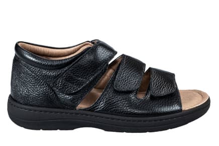 H θερμοδιαμορφούμενη σόλα σε συνδυασμό με τo σταθερό πέλμα το καθιστούν ιδανικό για την αποθεραπεία των ελκών σε πάσχοντες από διαβήτη. Κλείνει με αυτοκόλλητα Velcro.