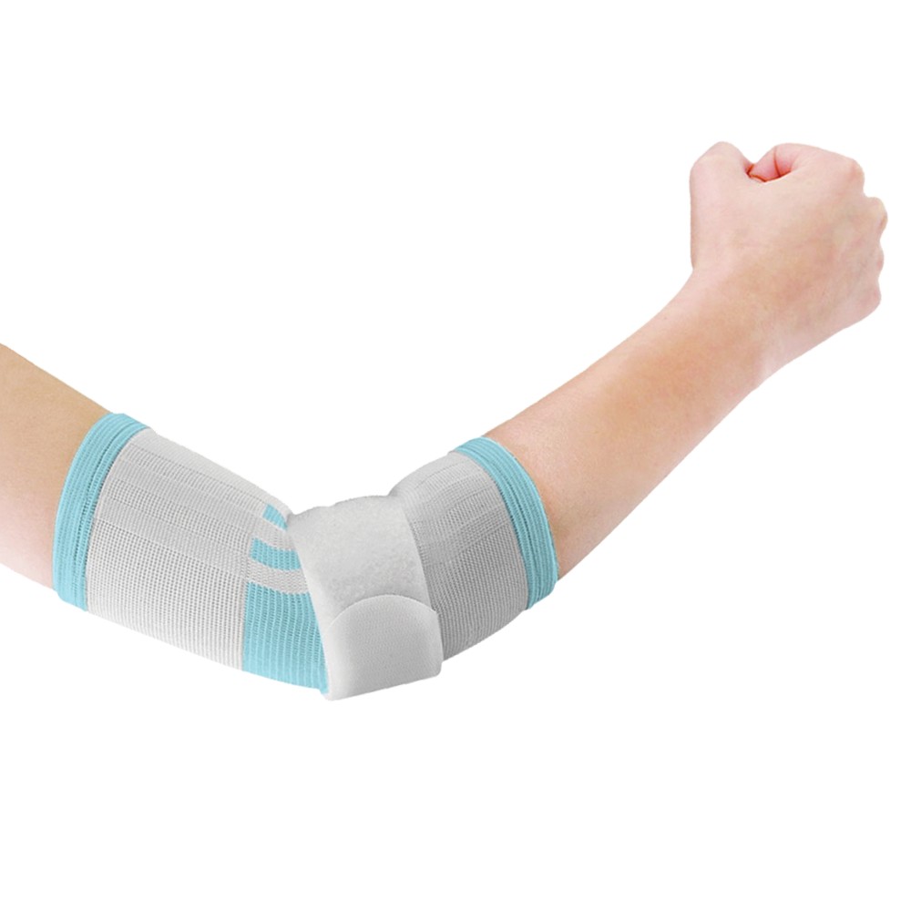Αγκωνίδα από ελαστικό υλικό, υψηλής αντοχής, με πίεστρο σιλικόνης για ανακούφιση από τον πόνο. Αυτοκόλλητη δέστρα στην περιοχή των κονδύλων. Παρέχει ομοιόμορφη συμπίεση στα μαλακά μόρια και στους ιστούς.