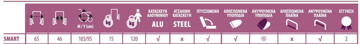 Αναπηρικό αμαξίδιο αλουμινίου πτυσσόμενο ελαφρού τύπου Smart Eco