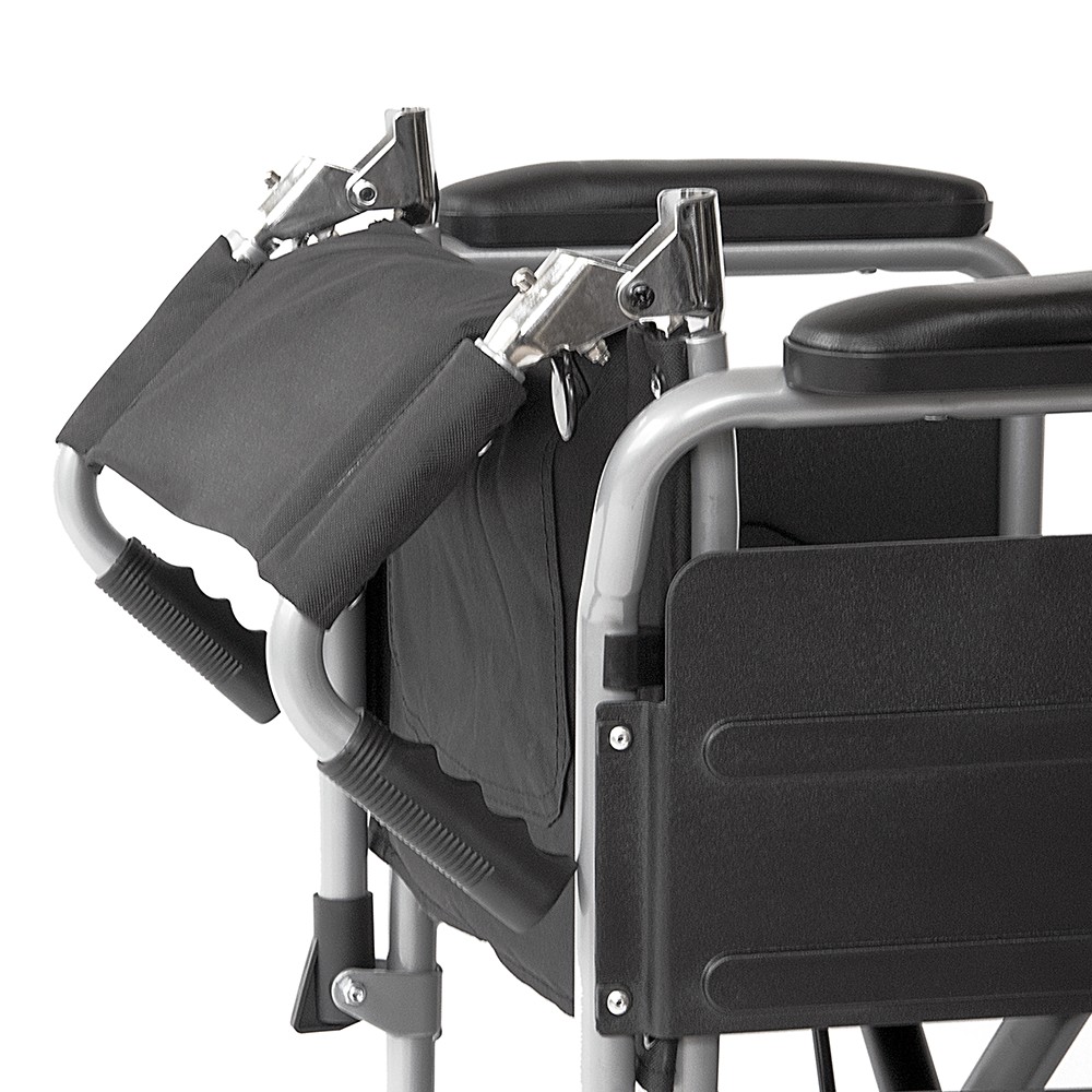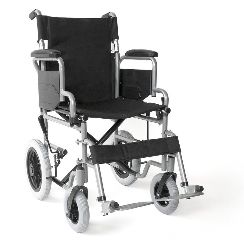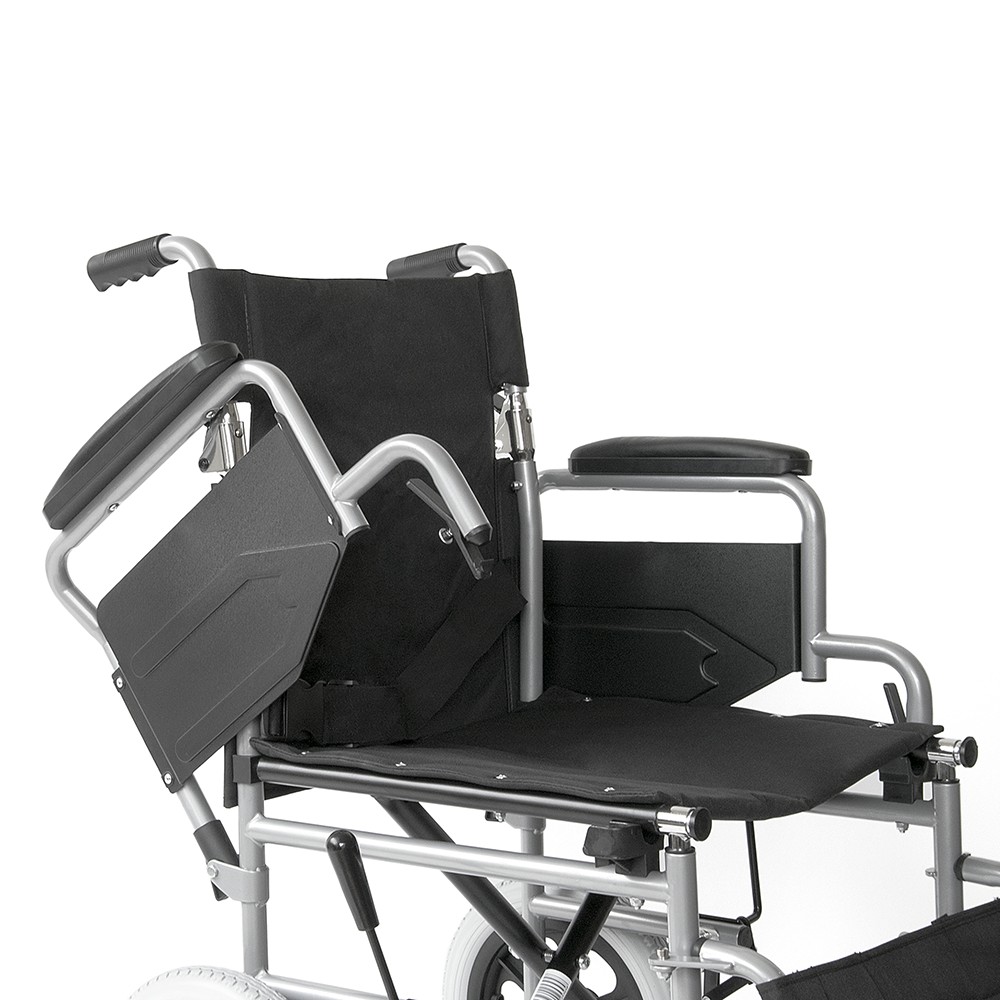 Αµαξίδιο µεταφοράς µε µεταλλικό σκελετό ακρυλικής βαφής. Πτυσσόµενο, µε διαιρούµενη πλάτη. Πλαϊνά τύπου “Flip-up”. Υποπόδια αφαιρούµενα και ρυθµιζόµενα. Φέρει ζώνη ασφαλείας.