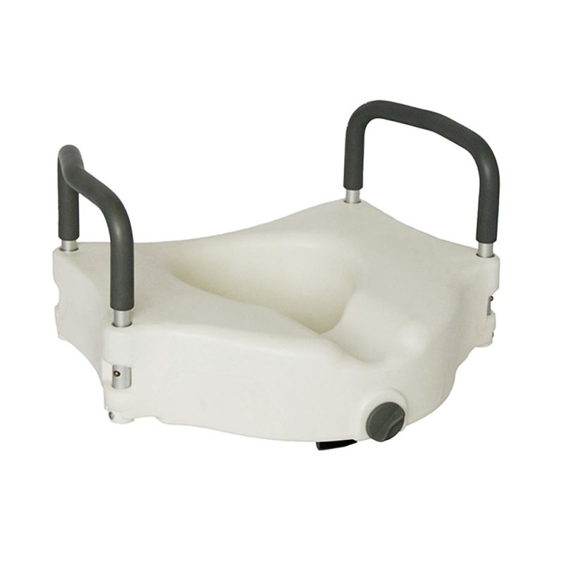 Ανυψωτικό κάθισµα WC µε αποσπώµενους βραχίονες. Κατασκευή από ανθεκτικό πλαστικό υψηλής ποιότητας, προς αποφυγή µολύνσεων. Ανατοµικός σχεδιασµός. Εµπρόσθιος σφιγκτήρας σταθεροποίησης στην τουαλέτα. Ειδικές χειρολαβές, µε αφρώδη επένδυση, για εύκολη χρήση από άτοµα µε κινητική δυσκολία. Πλένεται µε όλα τα κοινά απορρυπαντικά.