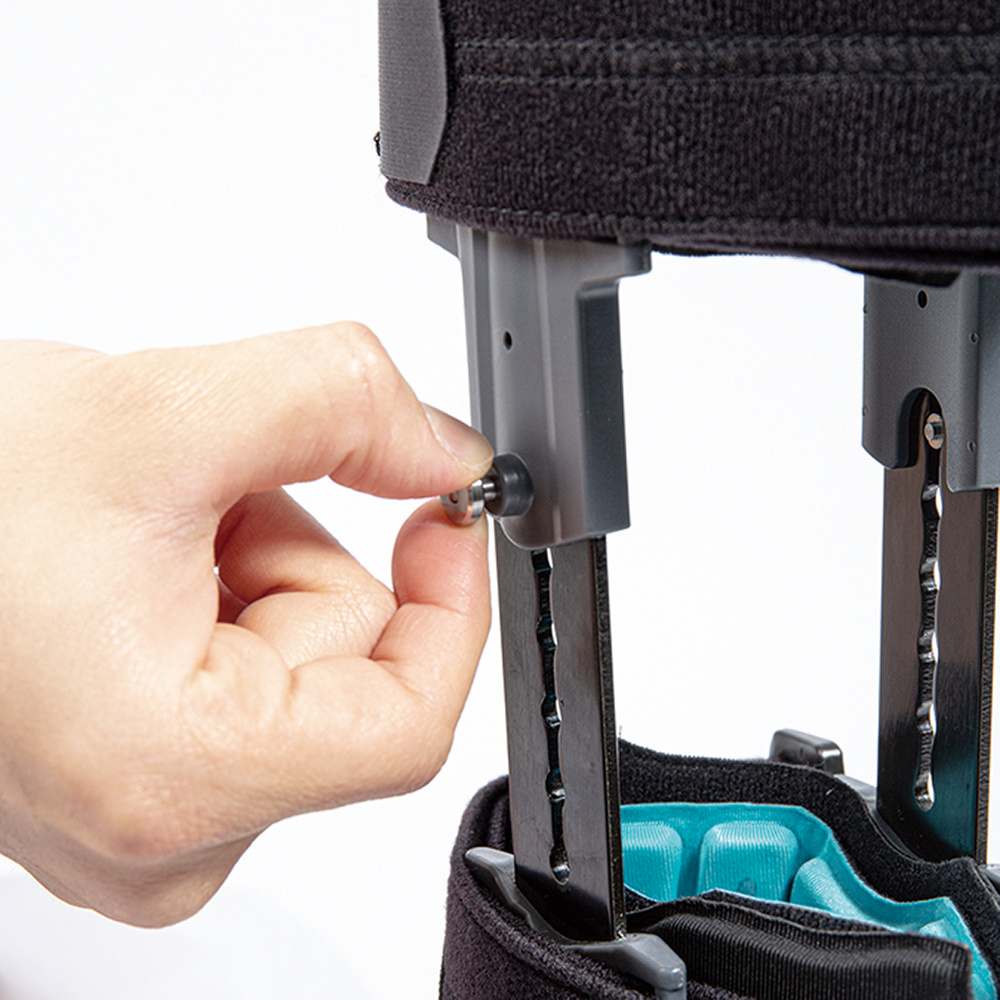 Διαθέτει πολυκεντρική άρθρωση που επιτρέπει τον έλεγχο της κάμψης και της έκτασης ανά διαστήματα 15 μοιρών.