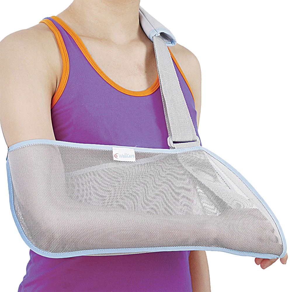 Κατασκευή από δικτυωτό ύφασμα, υποαλλεργικό και αεριζόμενο, υψηλής ποιότητoς. Φέρει ρυθμιζόμενο ιμάντα ανάρτησης. Μαξιλαράκι αποφόρτισης του αυχένος και υποδοχή για τον αντίχειρα.