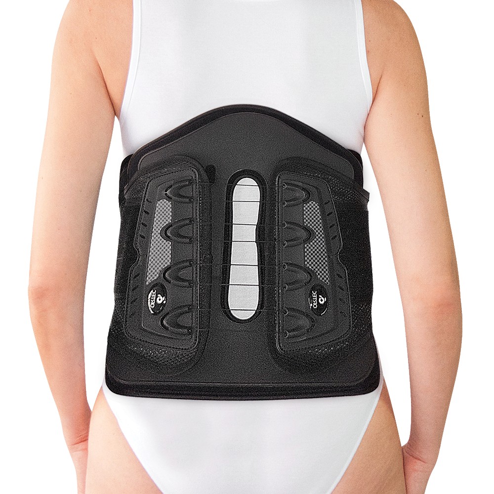Ο νάρθηκας αποτελείται από δύο προσθαφαιρούμενα εργονομικά πλαστικά τμήματα (πρόσθιο και οπίσθιο). Εσωτερικές αφρώδεις, υποαλλεργικές και μαλακές επενδύσεις. Στο οπίσθιο τμήμα διαθέτει άνοιγμα και μηχανισμό που ρυθμίζει βαθμιαία την αύξηση της συμπίεσης και σταθεροποιεί τη σπονδυλική στήλη. Επιδέχεται εφαρμογής αυτοκόλλητου συστήματος αεροθαλάμων για την αποφόρτιση της σπονδυλικής στήλης (Κωδικός 04-2-030). Ύψος νάρθηκα 33cm.