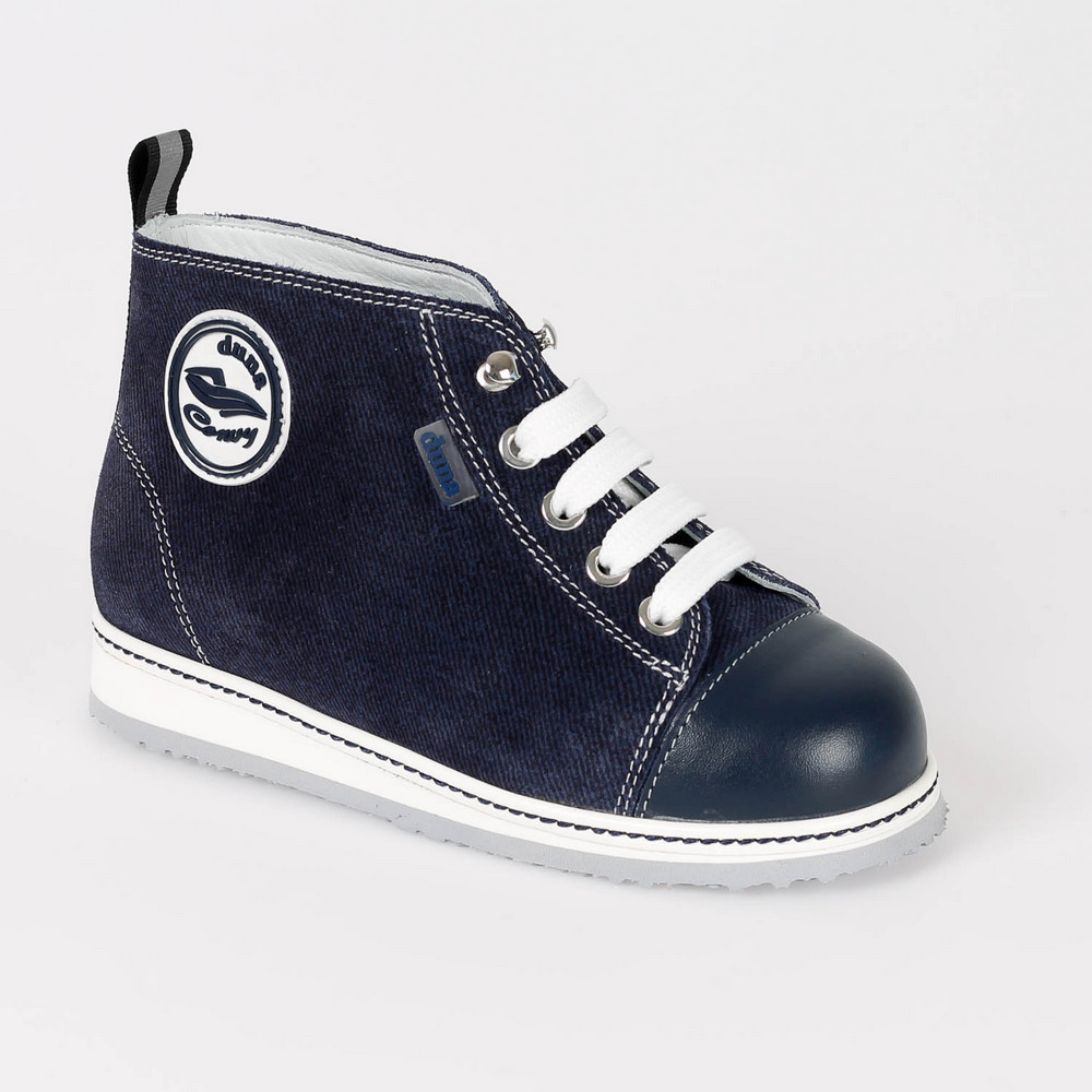 Ορθοπεδικό υπόδημα παιδικό του Ιταλικού οίκου Duna. Είναι άνετο και αντιεφιδρωτικό. Είναι κατασκευασμένο από δέρμα Nubuck. Εσωτερικά είναι επενδεδυμένο με φυσικό λείο δέρμα. Διαθέτει ανατομικά σχεδιασμένο και αποσπώμενο πάτο. Διαθέτει ανθεκτική και αντιολισθητική σόλα που προσφέρει ασφάλεια κατά τη βάδιση. Κλείνει εύκολα με κορδόνια. Είναι ιδιαίτερα φαρδύ και κατάλληλο για χρήση με κνημοποδικούς νάρθηκες έσω υποδήματος.