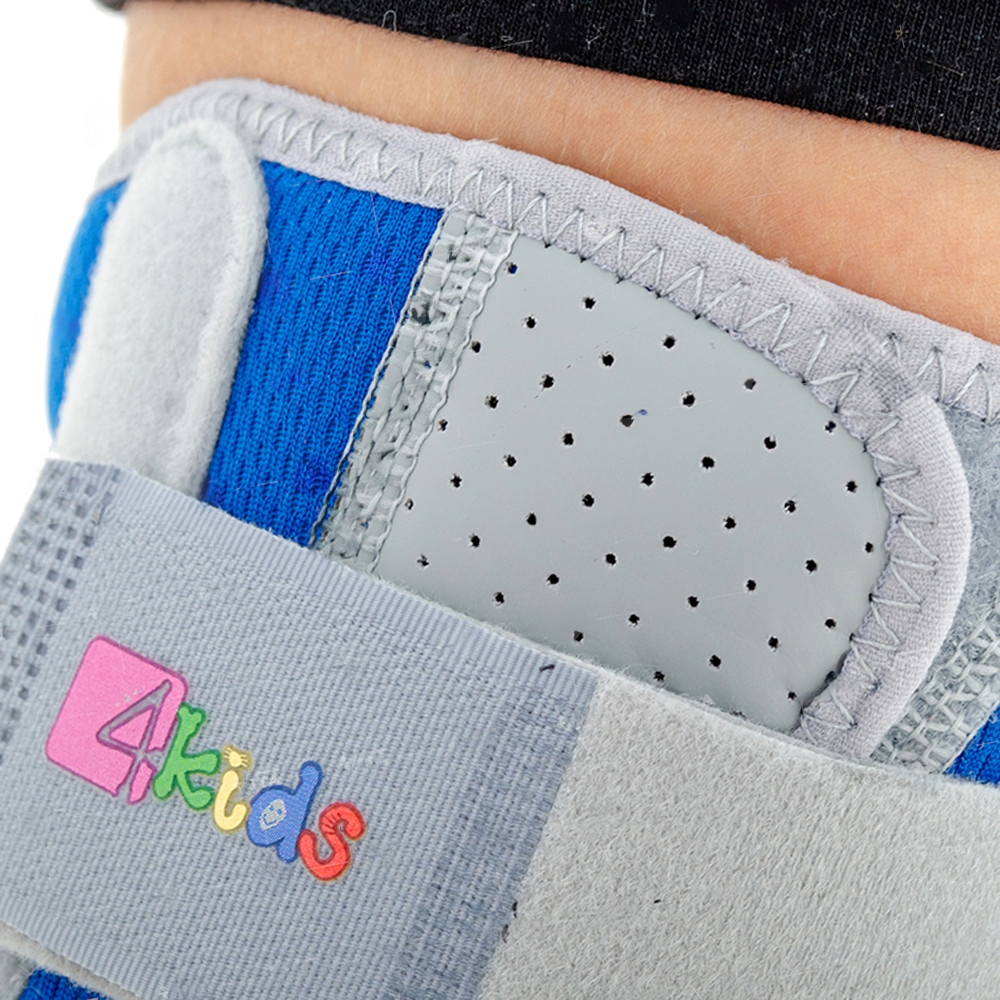 Παιδιατρικός νάρθηκας με οπή και εσωτερικό μαξιλάρι στήριξης και προστασίας της επιγονατίδος. Κατασκευασμένος από ελαφρύ, αεριζόμενο, υψηλής ελαστικότητας, υλικό «Ρrosix». Φέρει δύο ρυθμιζόμενες ελαστικές velcro δέστρες για σωστή εφαρμογή και σταθεροποίηση της άρθρωσης του γόνατος.