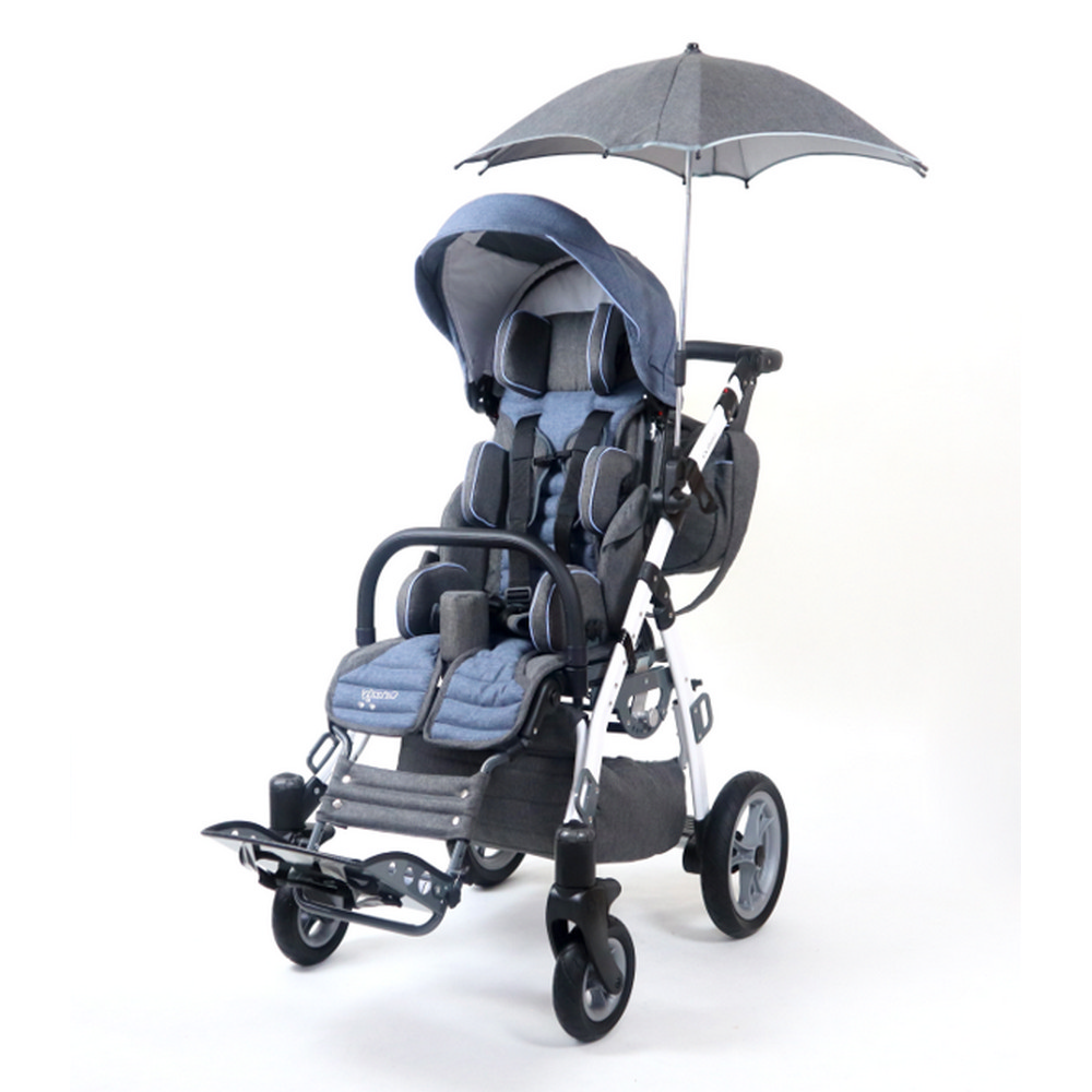 Μαζί με πλήρως ρυθμιζόμενα υποπόδια, ολοκληρωμένο σύστημα στήριξης, ανακλινόμενη πλάτη & κάθισμα, προσαρμόζεται στις ανάγκες του μικρού χρήστη.