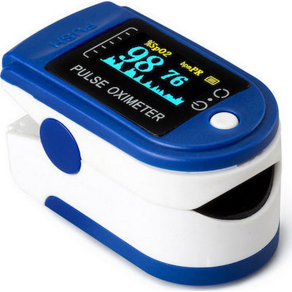 Παλμικό οξύμετρο για τη μέτρηση από το δάκτυλο του κορεσμού του αρτηριακού οξυγόνου (SpO2) και του καρδιακού ρυθμού.