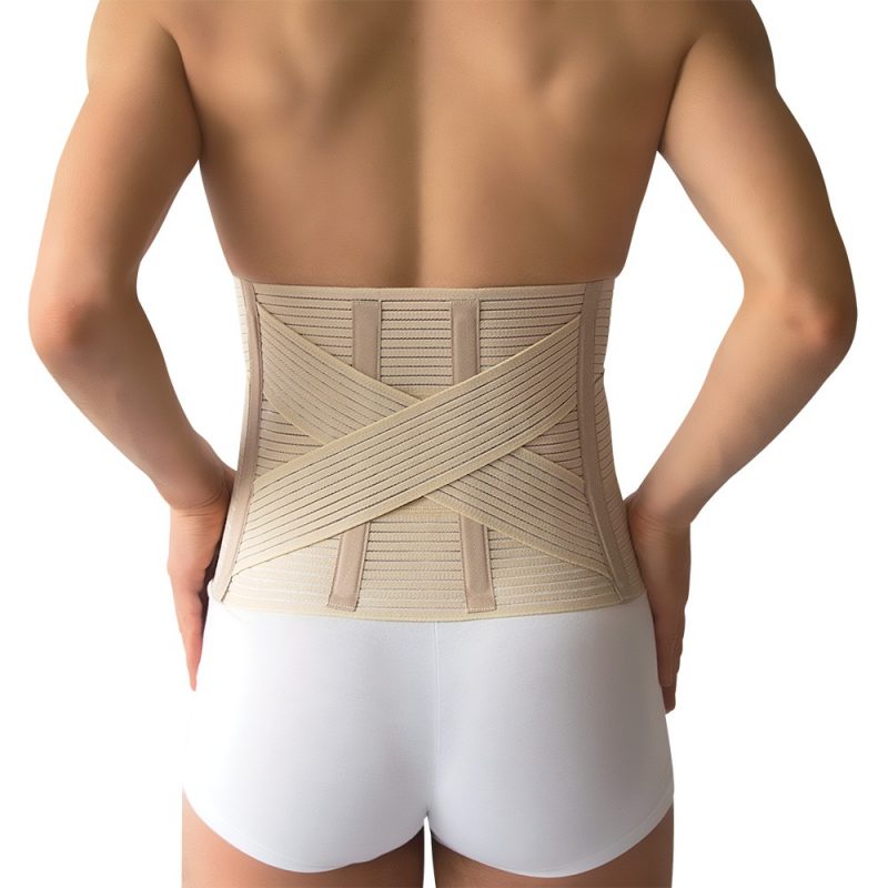 Κατασκευή από τρεις ελαστικές αεριζόμενες λωρίδες των 8cm. Οπίσθια χιαστί ενίσχυση με δύο ελαστικούς ιμάντες (criss-cross). Τέσσερεις εύκαμπτες μπανέλες στην οσφυϊκή χώρα και δύο πλάγιες spiral. Αυτοκόλλητο κλείσιμο εμπρός με velcro. Ύψος πίσω 25cm και εμπρός 16cm. Πλένεται.